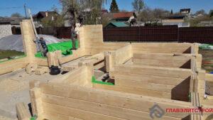 Наружные и внутренние стены ― клееный брус, сечение 205 х 270 мм.