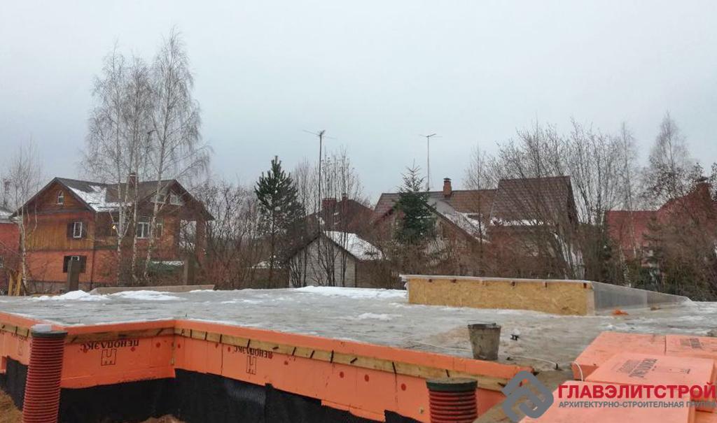 Фундамент дома ― цокольный этаж + свайно-ростверковый фундамент с монолитной плитой перекрытия.