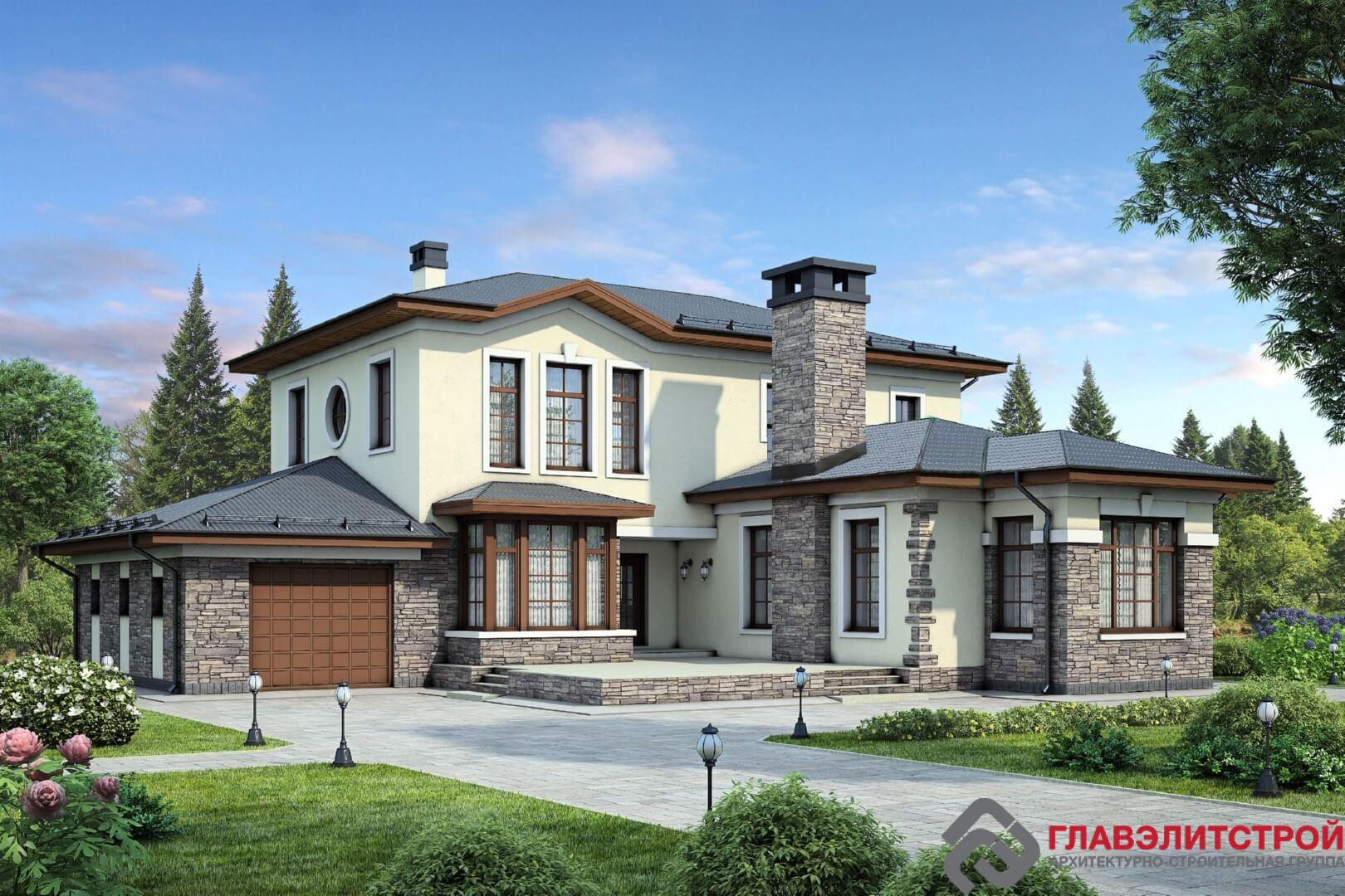 Усадьба Белое озеро – творение уникальное! Ассиметричное, с ломаными линиями периметра и каскадными крышами здание производит впечатление собранных в один ансамбль нескольких разнородных построек. Но как раз этот эффект Лего и придаёт зданию самобытный колорит и провинциальное очарование. Декоративный камень серо-коричневых оттенков в отделке стен и массивного высокого дымохода камина переносит нас в старую добрую Англию, возвращая к природной натуральности. А основная часть дома с высоким вторым этажом, прямоугольными окнами и треугольным фрагментом карниза словно срисована с особняка русского писателя 19 века. А бледная серо-жёлтая штукатурка стен и вовсе создаёт благодушное пасторальное настроение.