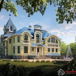 Усадьба Архипелаг – один из самых грандиозных и дорогих проектов, разработанных /предлагаемых архитекторами ГлавЭлитСтроя. Современная архитектура загородных особняков зачастую эклектична — это величественное сооружение вобрало в себя лучшее из замкового стиля, классицизма и ренессанса. Замок-дворец – именно так хочется назвать Архипелаг. Здесь есть и замковая башенка, и многофигурная крыша, и полуциркулярные фронтоны над фасадными окнами второго этажа, и четырёхгранный угловой эркер, и классические колонны крыльца. Парадный вход с широкой лестницей величав и торжественен. Волшебно-жёлтые стены смотрятся чрезвычайно богато, а нежная голубизна крыш напоминает замки Луары. Круглый фонтан перед домом только усилит эффект средневекового особняка.