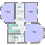 В двух эркерах второго этажа находятся спальни. Ещё одна – над кухней. В передней части этажа – ванная, в задней, по центру – санузел.