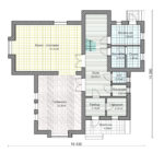 Левая половина 1 этажа отведена под просторные гостиную и кухню-столовую. Справа от крыльца и следующих за ним тамбура и холла – вспомогательные помещения: гардероб, кладовая, санузел, сауна с душевой и котельная.
