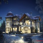На 1 этаже – раздолье всего , что требует душа для полноценной семейной и вообще жизни. Через спрятавшееся под балконом крыльцо, тамбур и гардероб вы попадаете в центральный холл, являющийся пропуском во все остальные помещения этажа. Слева – вместительная гостиная, соединённая с угловым зимним садом, а также через широкий технологический проём с кухней –столовой. Из кухни через дверь можно попасть на заднюю террасу дома. С правой стороны от холла рабочий кабинет, хоз. помещение, ванная с санузлом и котельная в дальнем правом углу здания. По центру за холлом – первая спальня.