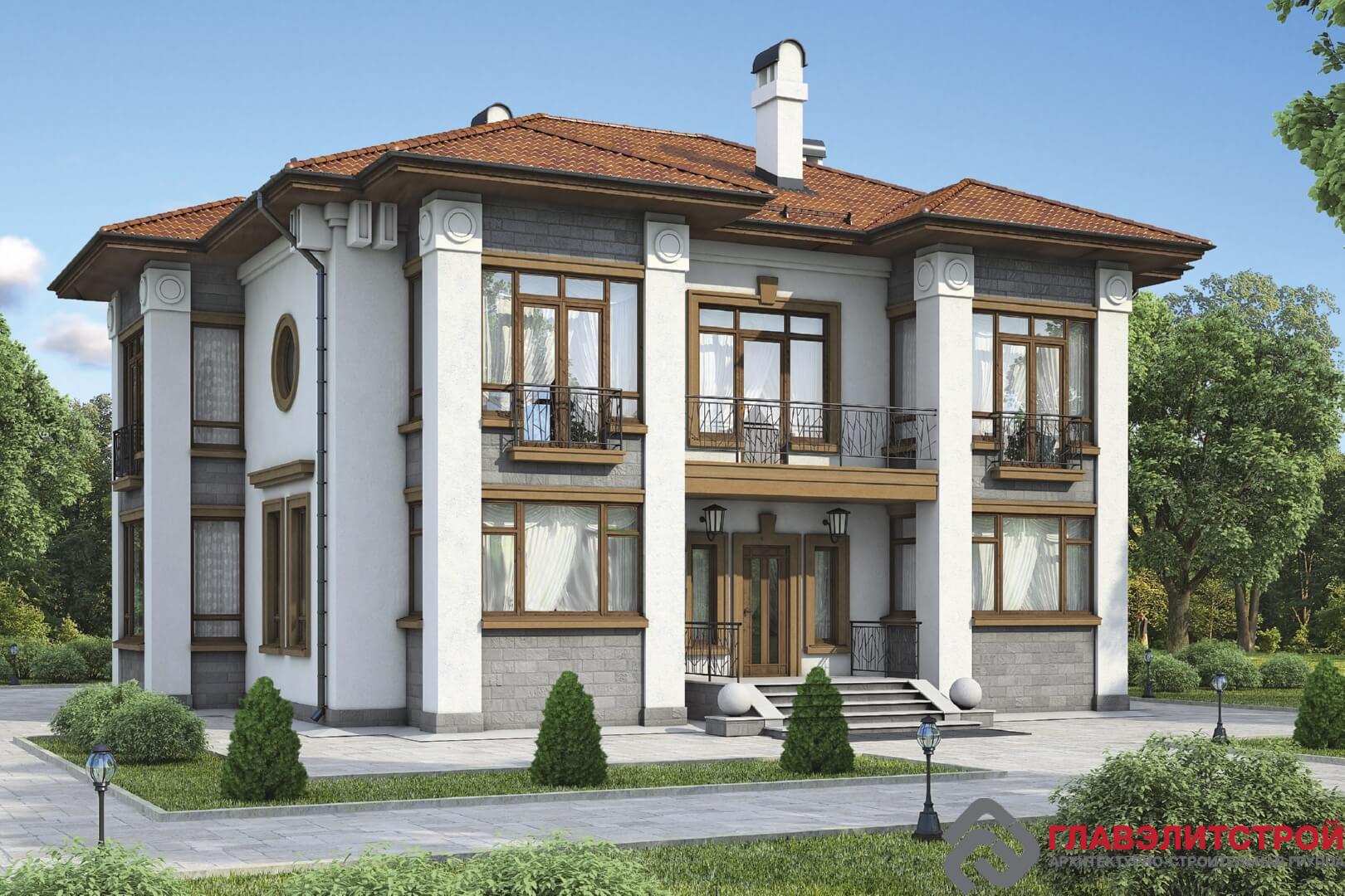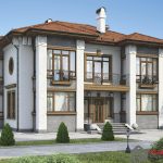 Усадьба Adimus – проект для хозяина, для которого содержание важней формы. Трудно предположить, что за сдержанной, близкой к осовремененной классике, архитектурой дома скрывается целый клад как необходимого, так и довольно роскошного функционала. Неброскую и строгую архитектуру здания разнообразят прямоугольные фронтальные и боковой эркеры. Углы эркеров стилизованы под квадратные колонны с простыми пилястрами, что придаёт фасаду классическую основательность. А большие деревянные окна делают дом светлым и уютным.