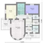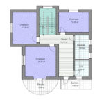 Помимо упомянутой гостиной, первый этаж вмещает в себя прихожую с холлом, гардероб, кухню и спальню. Справа от основного входа – вход в котельную, а из гостиной ест выход на миниатюрную открытую веранду с навесом , опирающимся на колонны. Три спальни разного размера превращают второй этаж в семейное царство Дрёмы. Из одной из них есть выход на открытый полукруглый балкон, где особенно приятным станет летний утренний завтрак. Рядом расположен ещё один, на это раз прямоугольный, балкончик, на который можно выйти из холла второго этажа. На обоих уровнях предусмотрены санузлы, а на втором этаже – ванная комната.