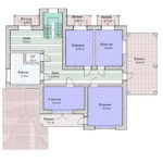 4 спальни второго этажа зовут не только спать, но и подышать свежим воздухом, так как все они имеют выходы на балконы. Их, кстати, целых пять, и они, по сути, окружают по периметру весь 2 этаж. На 2 балкона есть выходы только из холла. Кроме того, планировочный состав этажа дополняют ванная и санузел.