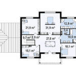 Центр второго этажа занимают бильярдная и главная спальня со своими ванной и санузлом. По периметру – ещё три спальни, две из которых детские, а также общий сан-гигиенический блок. Все спальни оснащены гардеробами. Из бильярдной – выход на второй балкон с изящной балюстрадой.