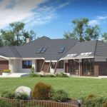 Вам никогда не хотелось пожить на ранчо в Аризоне, Неваде или Техасе? Если вы обратите внимание на проект Усадьба Калифорния, то вам и Атлантику пересекать не придётся для этого! Эта Усадьба спроектирована именно в этом стиле, который, к слову, родился как раз в Калифорнии в первой половине прошлого века. Приземистый дом вытянут вдоль дороги, большая часть постройки одноэтажная, он ассиметричен и глядит на окружающих солидными оконными проёмами. Из гаража есть выход на улицу, а вокруг усадьбы традиционно разбит большой газон с цветами и кустарниками. Всё это типично для современных ранчо. Но есть в проекте и нетривиальные решения, призванные освежить привычное восприятие и добавить зданию современности. Так, в центре одноэтажного особняка вырос локальный второй этаж, благодаря чему крыши дома становятся 3-х и 4-х скатными и более «весёлыми»! Ещё большей загадочности и современной сюрреалистичности придают строению обнажённые брусья стропил над небольшим участком террасы позади дома. И совсем уж неожиданной гостьей из конструктивизма выглядит белая витая лестница из бетона, ведущая на второй этаж с задней стороны усадьбы. Эта «гостья из будущего» сразу приковывает к себе внимание!
