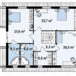 На втором этаже – хозяйская, гостевая и детская спальни с гардеробами, а также общие гардероб и ванная с санузлом. В хозяйской спальне – своя ванная с санузлом и выход на боковой балкон.