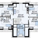 На втором этаже, помимо 4-х спален с гардеробами, есть общая ванная с санузлом и большая гостиная. Свет во все помещения второго этажа поступает через ажурные слуховые оконца.
