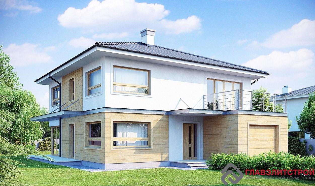 На втором этаже разместились 4 спальни с гардеробами, общий гардероб и ванная с санузлом. Одна из спален оснащена собственным санузлом, а ещё одна имеет выход на балкон с никелированным ограждением. Решение с балконом выглядит сколь оригинально, столь же и практично – его основанием служит крыша гаража.