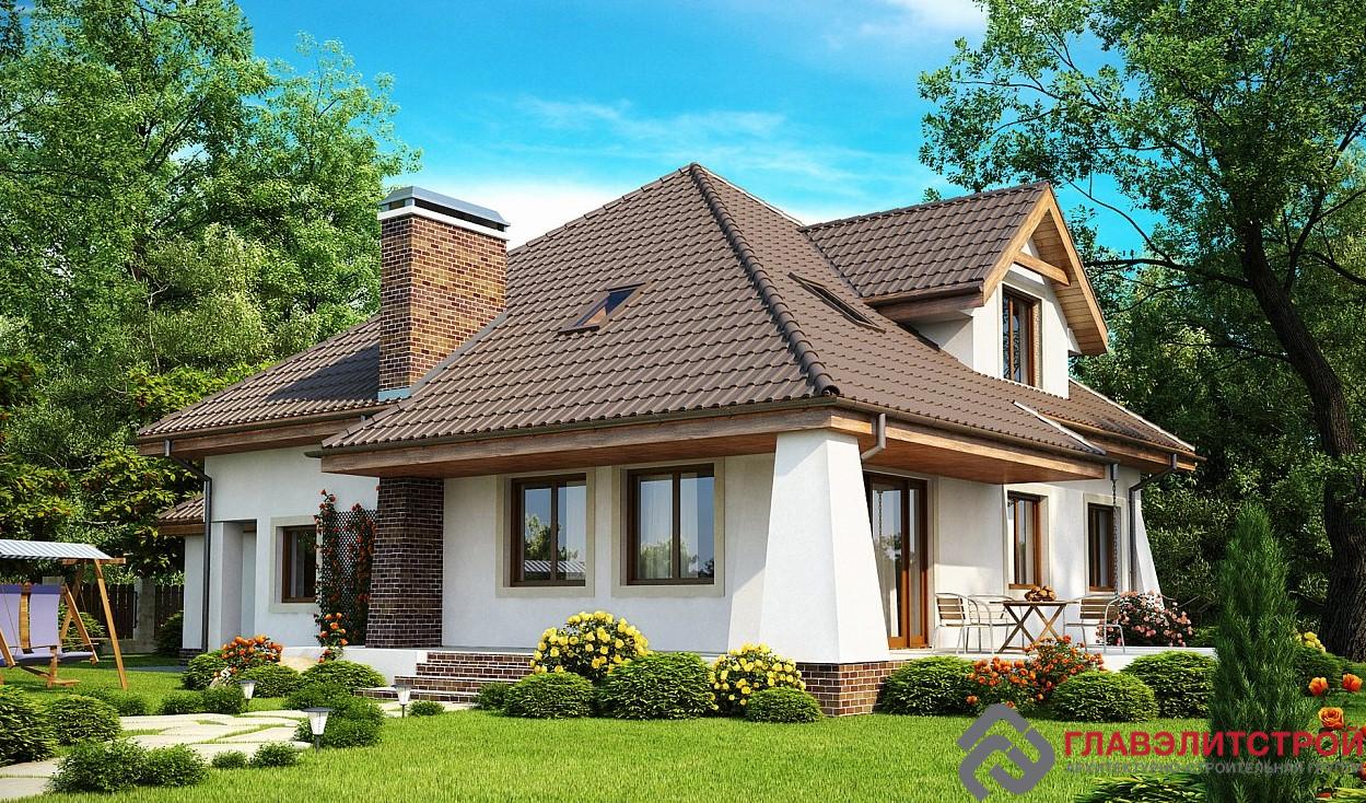 Проект Усадьба Белоснежка снова отправляет нас в сказочное путешествие братьев Гримм. Фигурная многощипцовая крыша лилово-бежевого цвета с деревянными фронтонами и карнизами, конусообразные углы здания и колонны, поддерживающие широкие карнизы 1 этажа, кирпичный дымоход камина, рассекающий скат крыши, нарядные белоснежные стены, деревянные рамы окон и дверей, коричневые ступеньки крыльца и ажурный балкон над ним – полное ощущение того, что сейчас из домика высыпет весёлая ватага добрых Гномов, а на балкон поприветствовать гостей выйдет юная красавица Белоснежка. Дом и впрямь выглядит очень уютным и гостеприимным. А то, что спрятано у него внутри, только подтверждает первое впечатление.